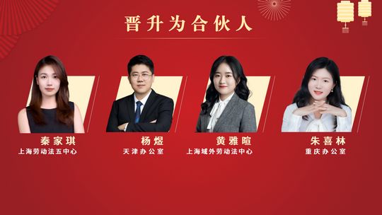 “舞台因舞者而生动,舞者因舞台而升华”,人才培养一直是江三角人才建设的重要课题,关爱员工个人发展更是江三角始终追求的目标。在这个充满荣耀的时刻,迎来了激动人心的入伙仪式。今年,有三位合伙人晋升为高级合伙人,分别是深圳办公室副主任黄敏律师、重庆办公室主任徐浩律师、上海域外劳动法中心主任王天怡律师;有四位律师晋升为合伙人,分别是上海劳动法五中心主任秦家琪律师、天津办公室负责人杨煜律师、上海域外劳动法中心黄雅暄律师、重庆办公室朱喜林律师。
