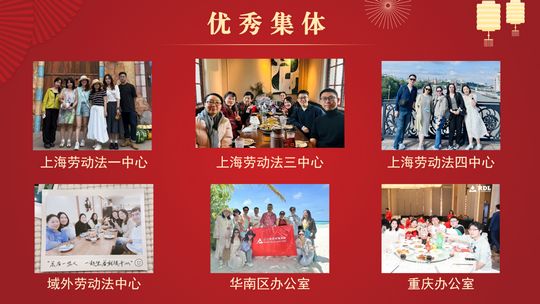 为表彰先进,树立榜样,进一步鼓舞激励员工踔厉奋发,不断为客户提供更优质的服务。本年度共产生六个优秀集体、九名优秀员工,以及十大优秀诉讼案例和十大优秀非诉讼案例。