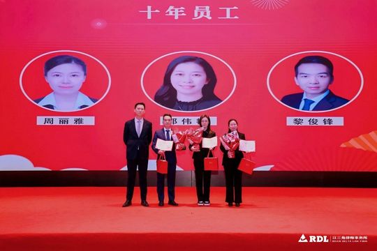 “十年坚守,始终如一,风雨同行,感恩有你。”在大会上,特别为在江三角履职十年及以上的员工以及二十年以上的员工举行了纪念活动。他们在平凡的岗位上默默付出,用青春和汗水书写着奋斗的篇章,用坚守和奉献诠释了对律所的忠诚与热爱。他们见证了江三角的成长与发展,是江三角最宝贵的财富。江三角感谢他们的一路相伴,也祝愿他们在未来的日子里,继续享受工作带来的快乐与成就感,保持对法律事业的执着与热爱,在江三角的舞台上继续闪耀光芒,与律所共同迈向更加美好的明天。