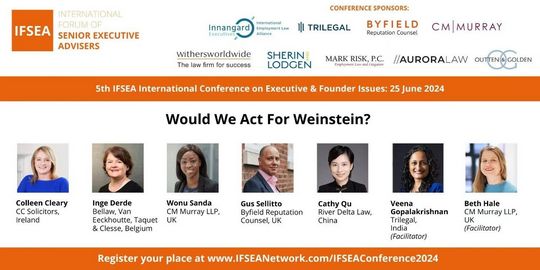 2024年6月24日至25日,江三角律师事务所高级合伙人、副主任屈晓蓉律师受邀参加由英国CM Murray LLP主办的2024年度高级执行顾问国际论坛(International Forum of Senior Executive Advisers 2024 Annual Conference,以下简称“IFSEA”或“本次论坛”)。